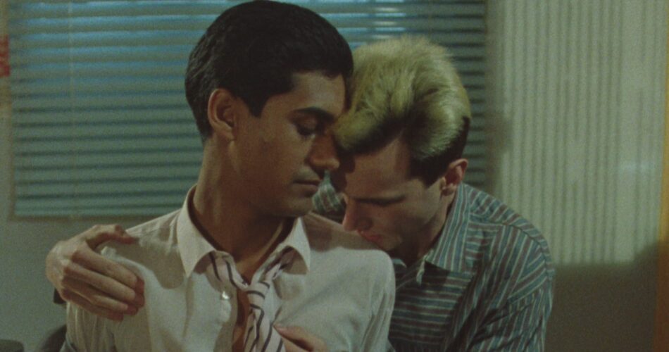 O romance entre Omar e Johnny nunca é tratado pelo filme como um “problema” moral. Pelo contrário, ele surge de maneira orgânica, íntima e, por vezes, surpreendentemente serena. Frears evita o melodrama e a tragédia fácil, optando por uma abordagem quase cotidiana do amor entre dois homens em um ambiente hostil. Essa escolha estética e narrativa foi profundamente revolucionária para a época, sobretudo ao inserir a homossexualidade no centro de um debate mais amplo sobre classe, imigração e poder econômico, sem isolá-la como uma questão identitária única. Se muito se fala sobre a experiência gay na América de Reagan, pouco se discutia, até então, sobre a vivência queer no Reino Unido sob Thatcher — lacuna que o filme ajuda a preencher.