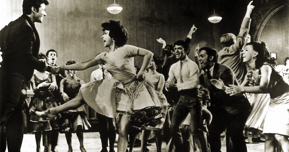 Desde os primeiros minutos, West Side Story afirma sua grandeza. O plano aéreo de Nova York, que lentamente desce até as ruas do bairro, estabelece o espaço urbano como um personagem central. A cidade surge como um labirinto de concreto que cerca e aprisiona seus habitantes. Jerome Robbins, responsável pela coreografia e pela codireção das sequências musicais, transforma esse espaço em palco: becos, quadras esportivas e escadarias tornam-se extensões emocionais dos personagens. A dança substitui o diálogo convencional e se converte no principal meio de expressão de impulsos, rivalidades e desejos, com a delicadeza e a precisão de um balé urbano.